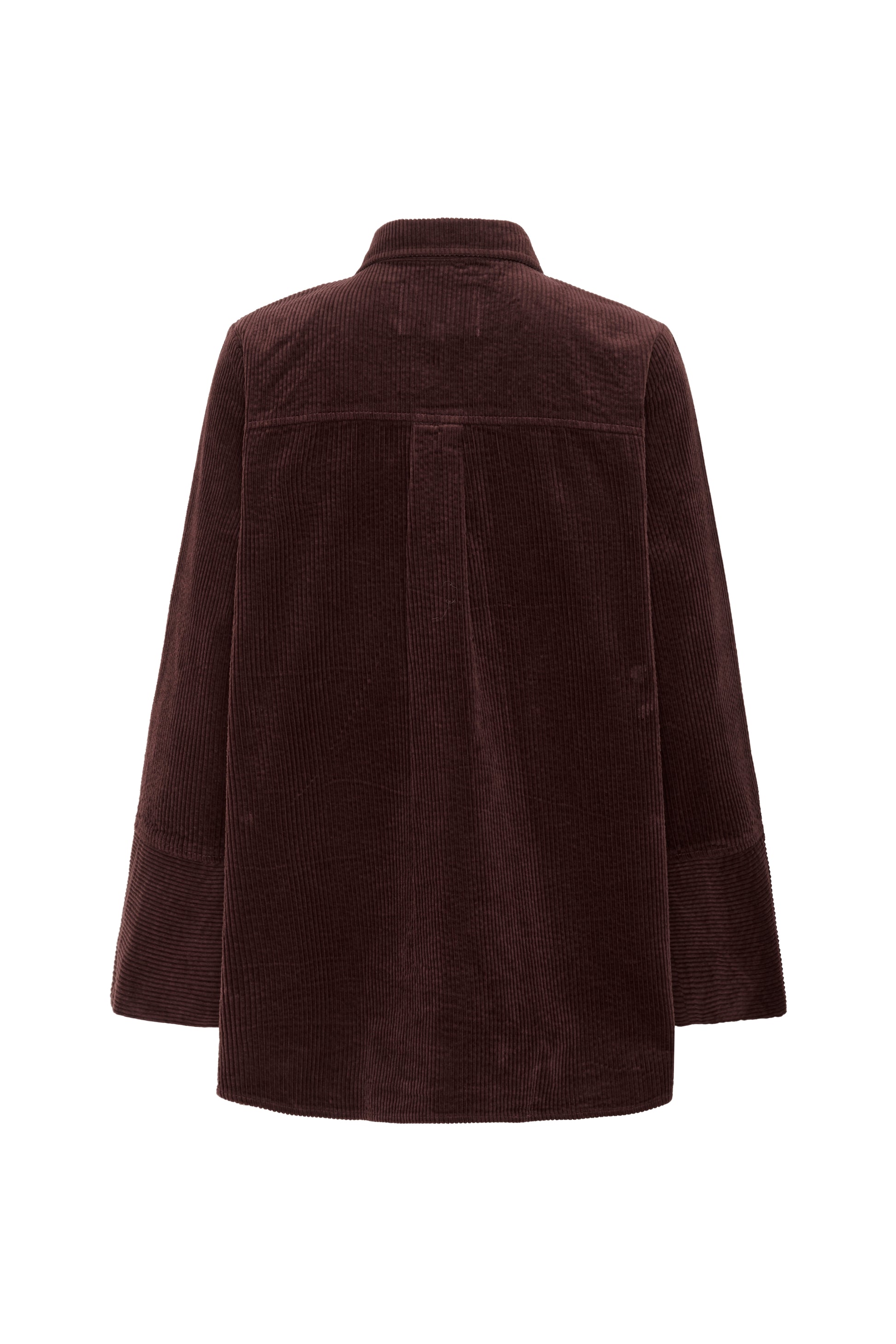 This jacket features a rich deep burgundy color and is made from wide wale corduroy. It comes with two front patch pockets and wide cuffs, offering a relaxed and comfortable fit.