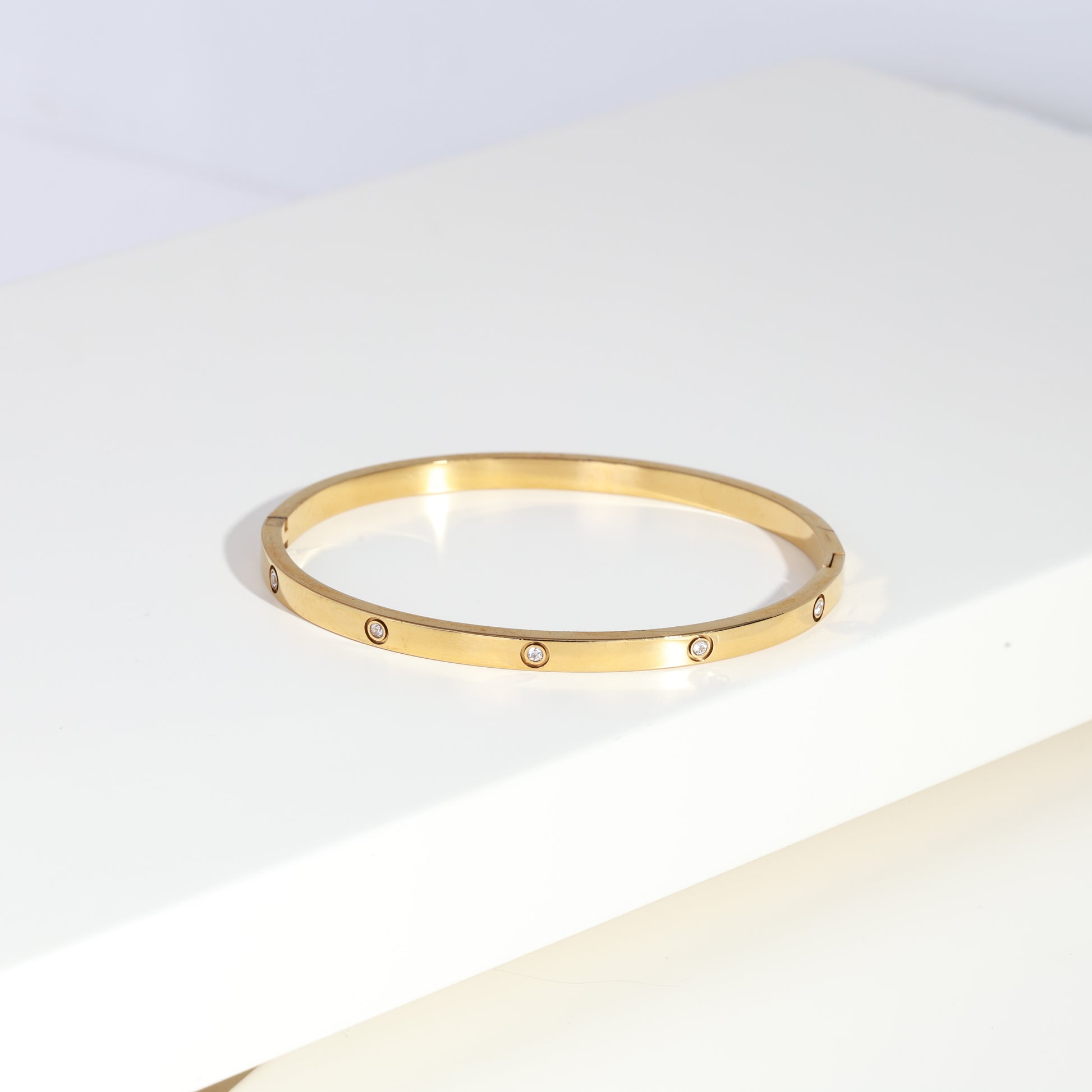 This delicate hinge bracelet features carefully positioned crystals that add a subtle sparkle, perfect for enhancing your everyday look with a gentle touch of shimmer