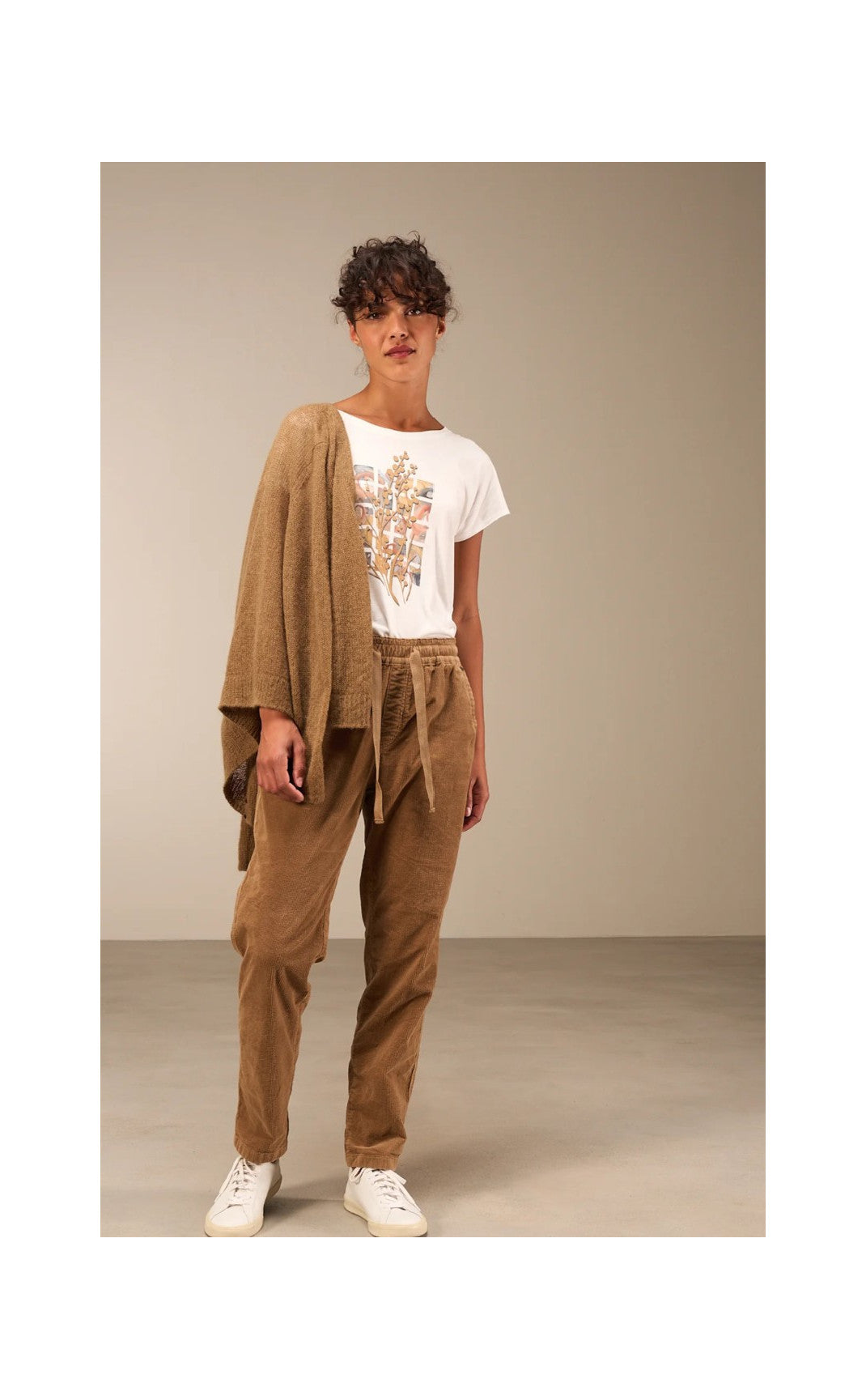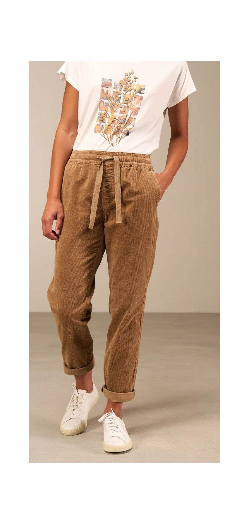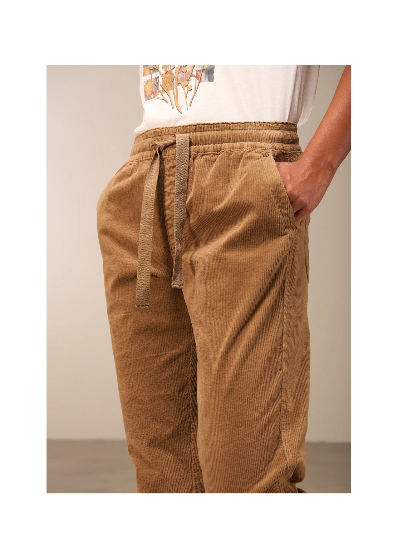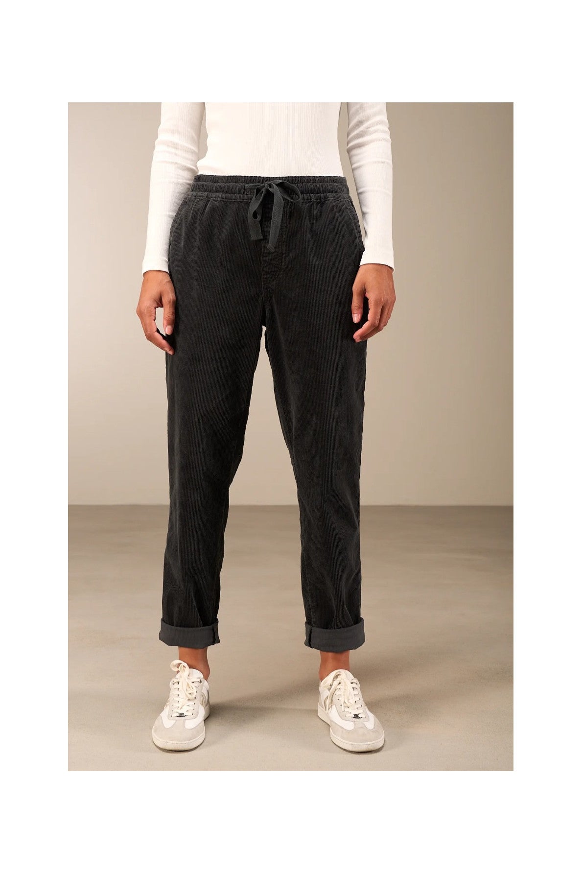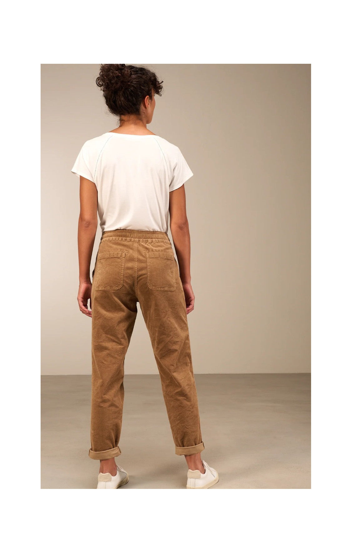 Casual, sporty trousers in soft lengthwise ribbed cord fabric with a mid-rise elastic waistband with drawstring, rolled-up hem and patch pockets.