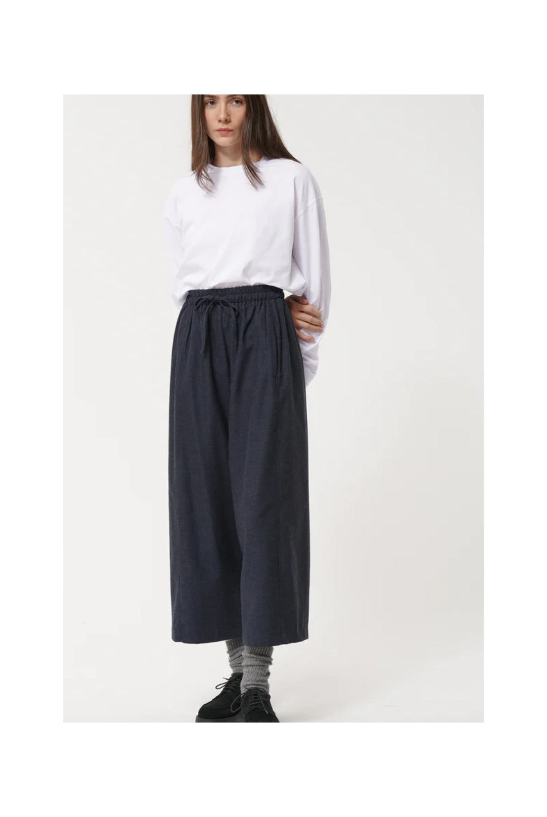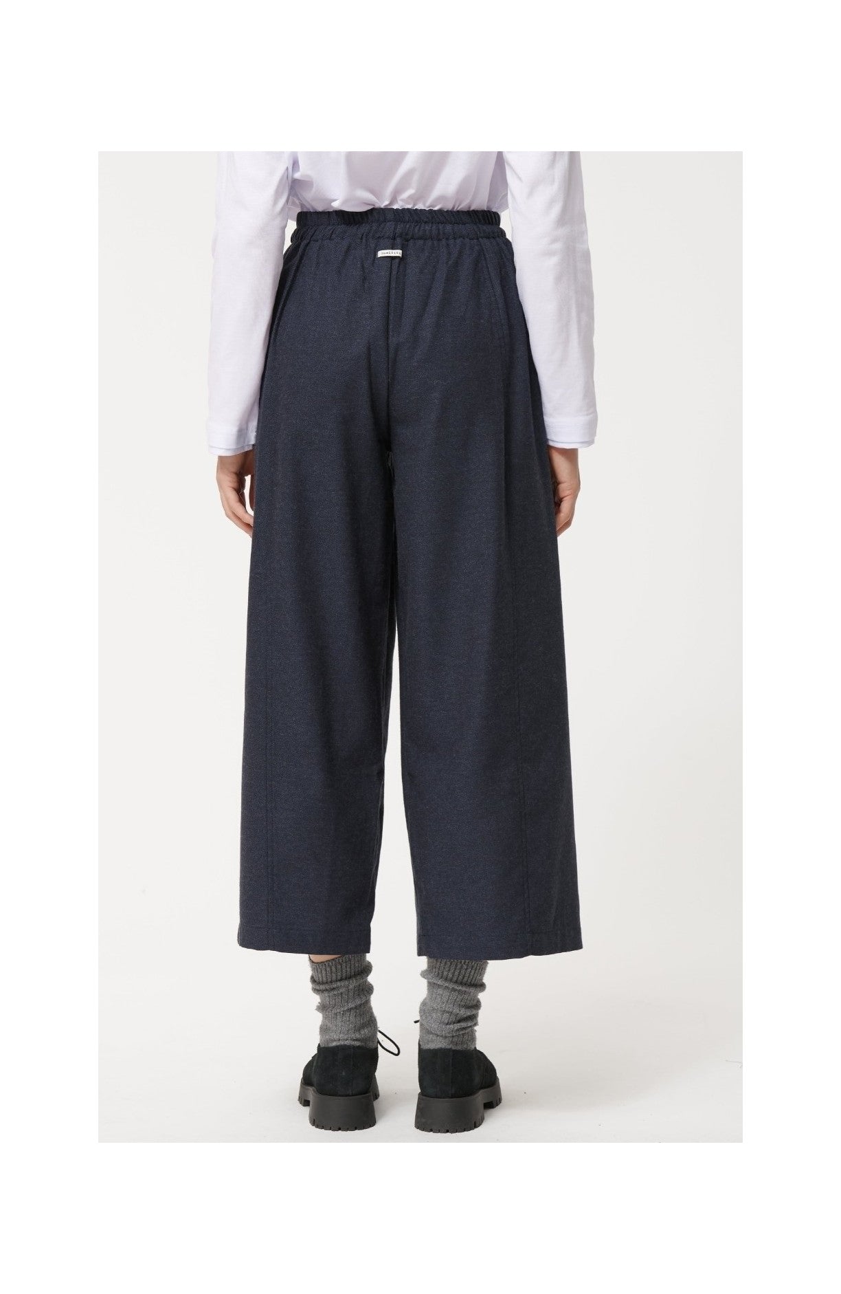 Experience unmatched comfort and style this season with these navy crop wide-leg pants. Made from a light, brushed soft fabric, they feature a fully elastic waistband for a perfect fit. Ideal for pairing with boots or loafers, and versatile enough to layer lightly or wear under your favorite winter coat, these pants are designed to carry you effortlessly through the season.