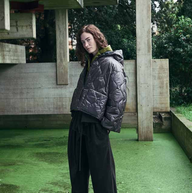 This lightweight puffer jacket features modern scroll quilting design and a slightly extended back hem. It includes patch pockets at the front and a convenient attached hood. An ideal choice for staying comfortable during the Fall transition.