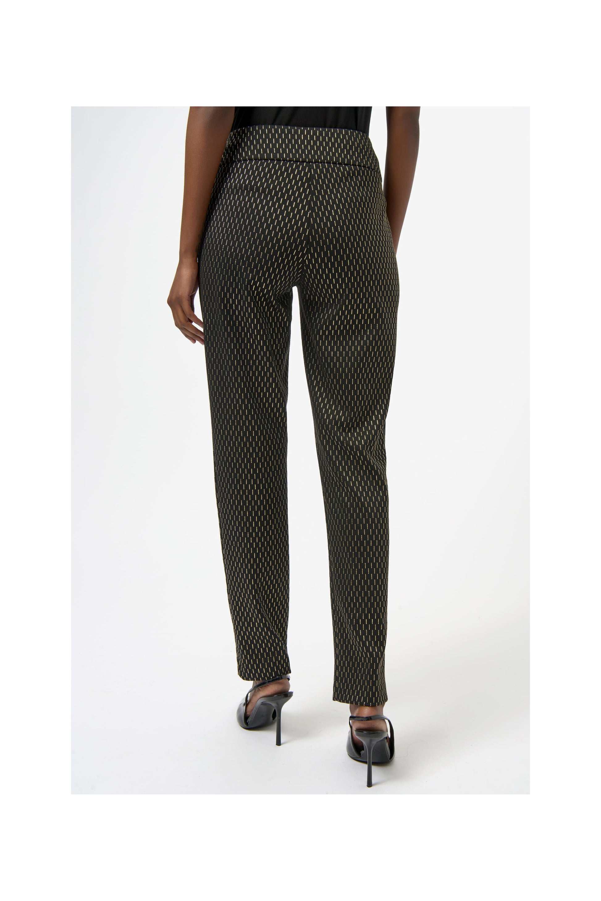 These knit pull-on pants with a distinctive foil dot pattern offer a stylish way to stand out. Their slim fit enhances your shape, adding a refined touch to your outfit.