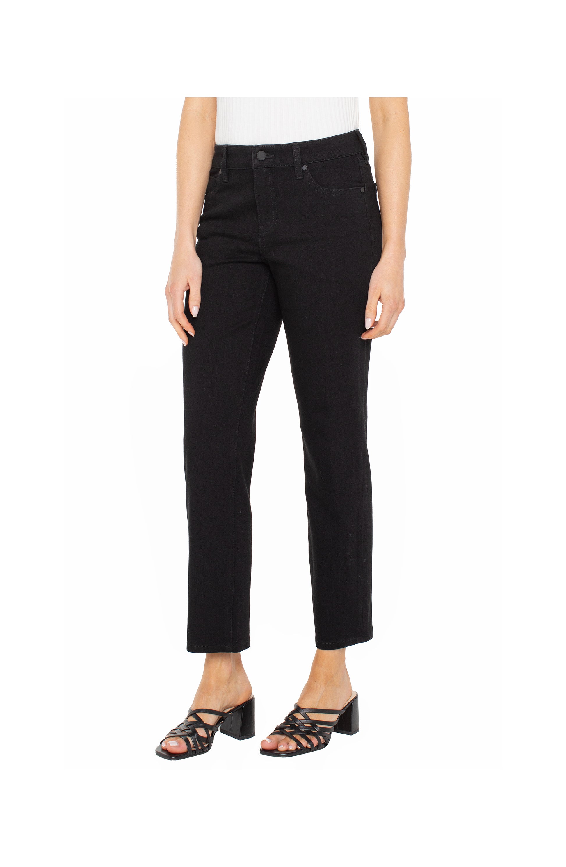 In a rich black rinse, this versatile denim seamlessly transitions from day to night — pair it with sleek blouses, relaxed knits, or tailored layers for endlessly wearable style. 28" Inseam. Mid-rise