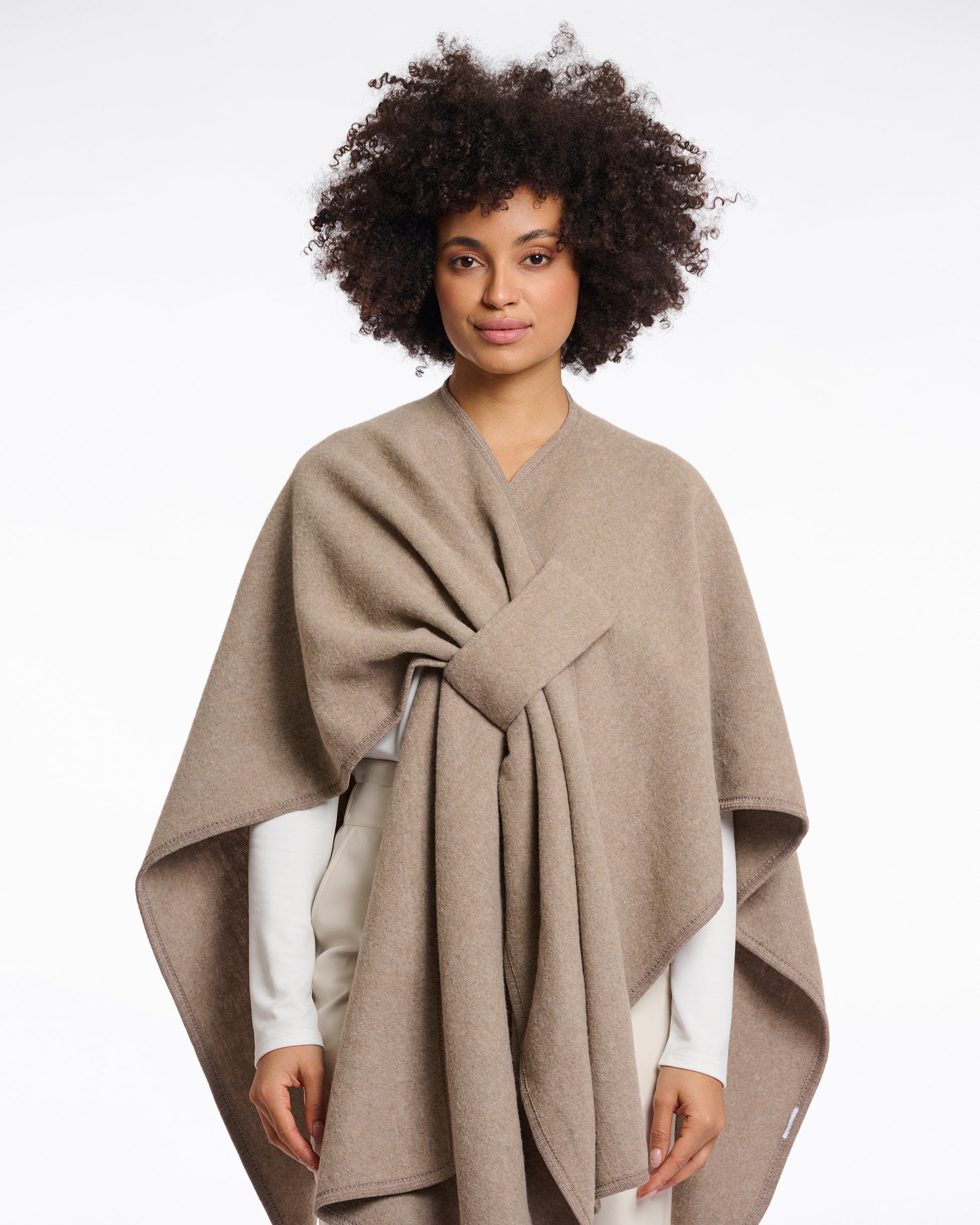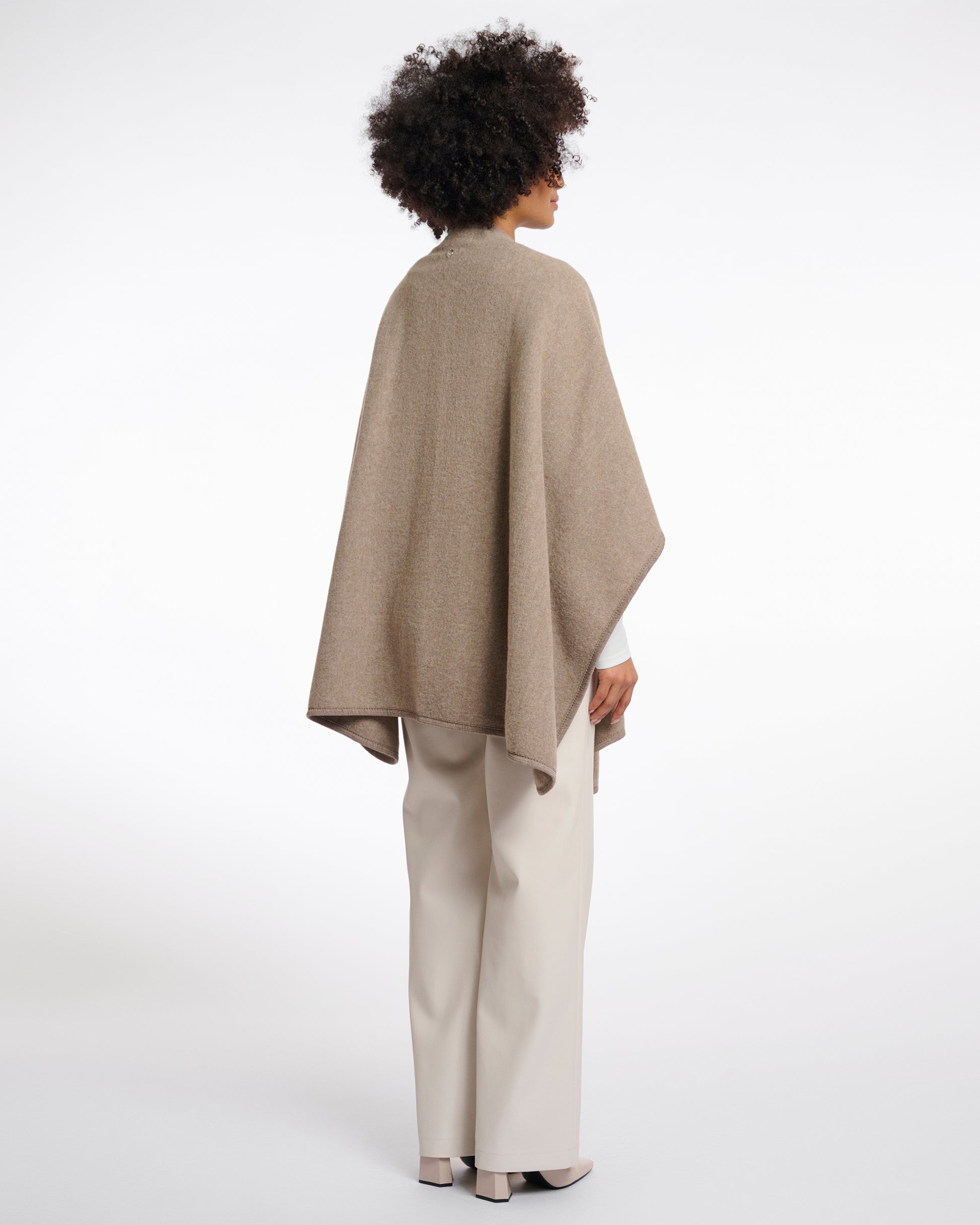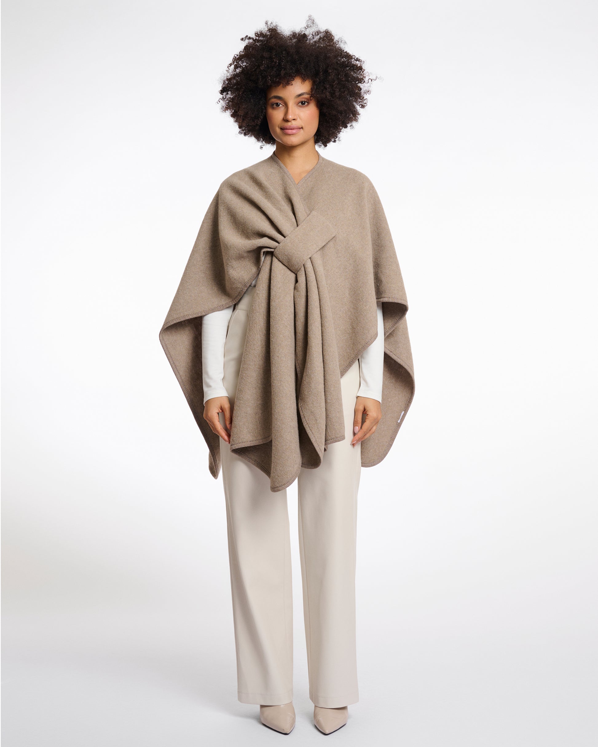 The MARWA woven cape offers a soft and sumptuous feel. Designed with a relaxed fit, it includes a wide belt loop for secure closure and stylish accents